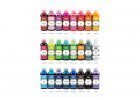 Barvy do epoxidové pryskyřice jsou kapalná barviva v ředěné nebo koncentrované formě. Pracují transparentně – pryskyřice zůstává čirá/průhledná s barevným tónem. Ředěné barvy jsou ideální pro malé odlitky a šperky, koncentrované zvládnou větší objemy a přesné míchání odstínů.
