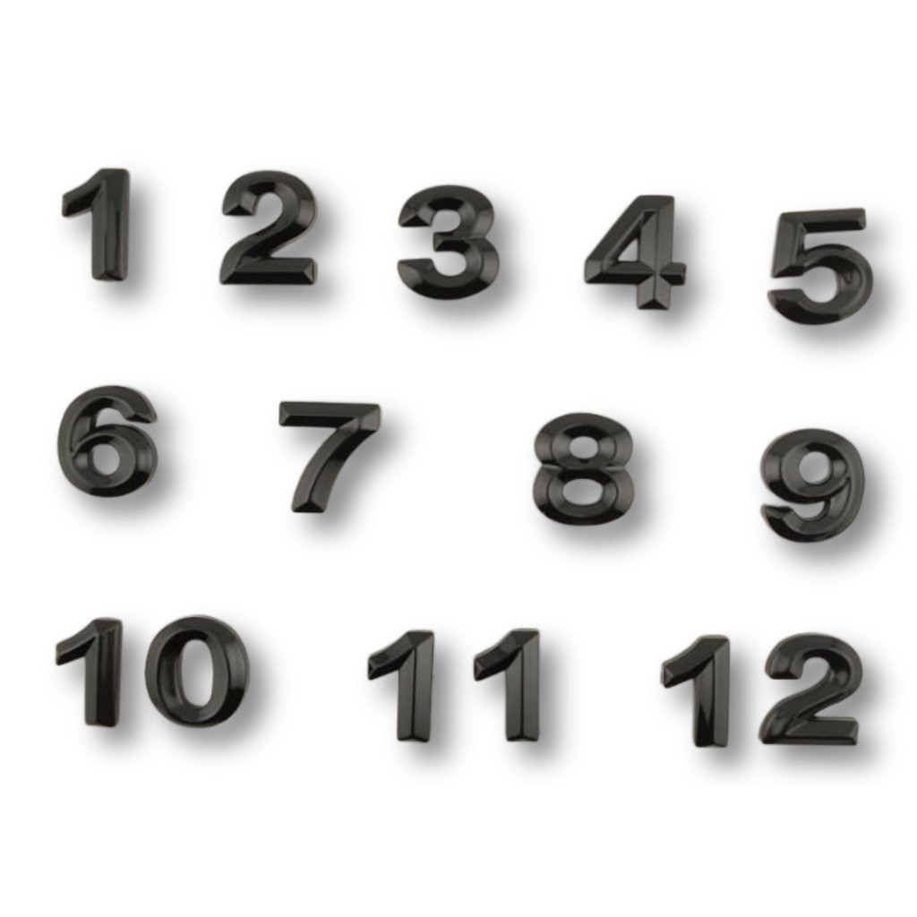 Die profilierte (plastische) Form der Ziffer erzeugt einen dezenten 3D-Effekt, sodass die Ziffer auf dem Zifferblatt nicht flach wirkt, sondern Tiefe und Raum erhält. Die schwarze Farbe sorgt für einen deutlichen Kontrast auf hellen, bunten und Epoxid-Untergründen, sodass die Ziffer auch auf einem auffälligen Hintergrund gut lesbar bleibt.