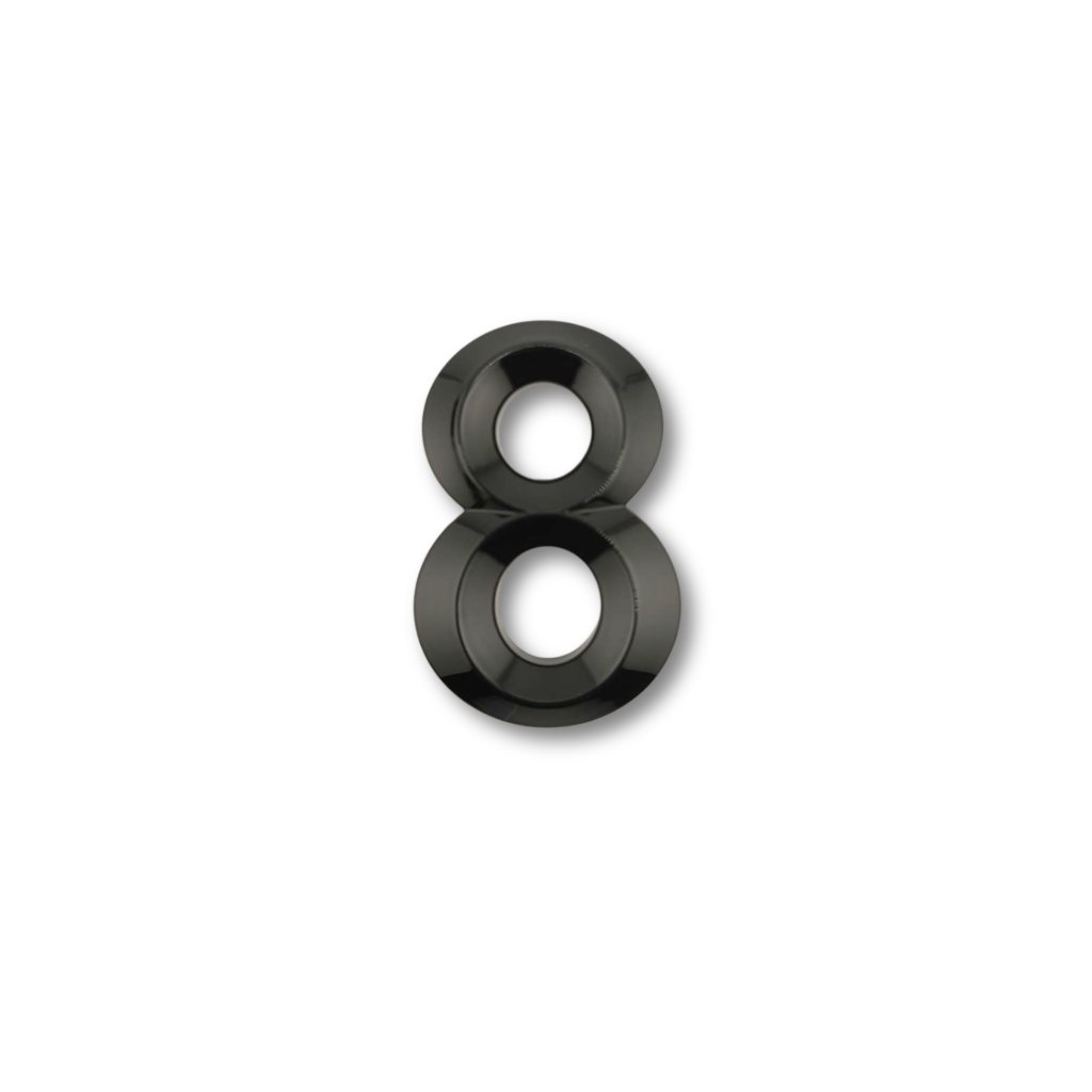 Die profilierte Form verleiht der Ziffer einen 3D-Effekt, der sowohl mit der glänzenden Oberfläche von Epoxidharz als auch mit der natürlichen Holzmaserung harmoniert. Die schwarze Farbe erzeugt einen ausgeprägten Kontrast, mit dem Sie die Zeit auch auf farbigen und strukturierten Untergründen leicht ablesen können.