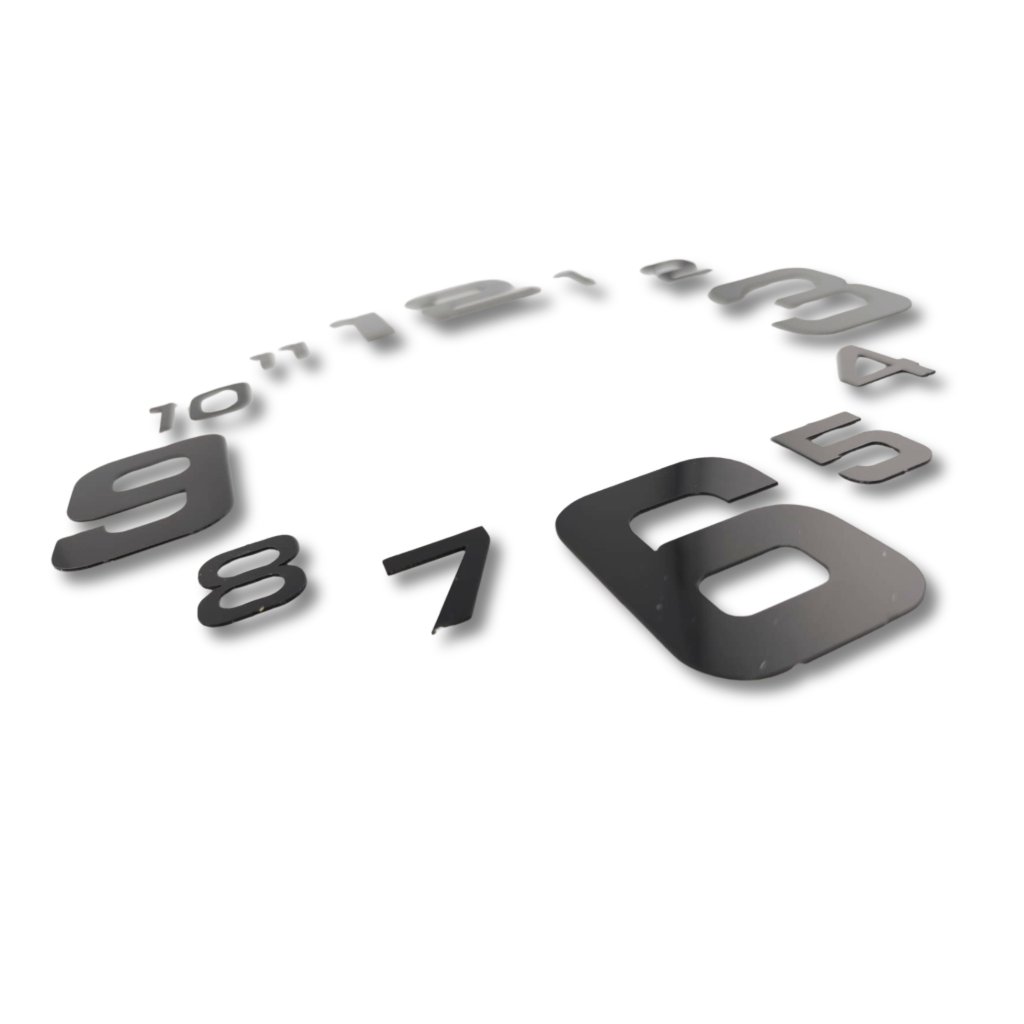 Spiegelzahlen mit einer Höhe von 82 mm sind eine ausgezeichnete Wahl für alle, die große, moderne und auffällige Wanduhren gestalten möchten. Die spiegelnde Oberfläche wirkt elegant, luxuriös und zieht auf dem Zifferblatt sofort die Aufmerksamkeit auf sich – egal, ob Sie aus Epoxidharz arbeiten, Holz verwenden oder das Zifferblatt direkt an die Wand kleben.