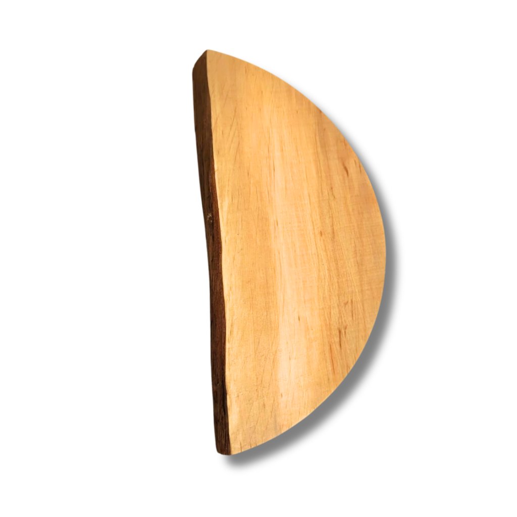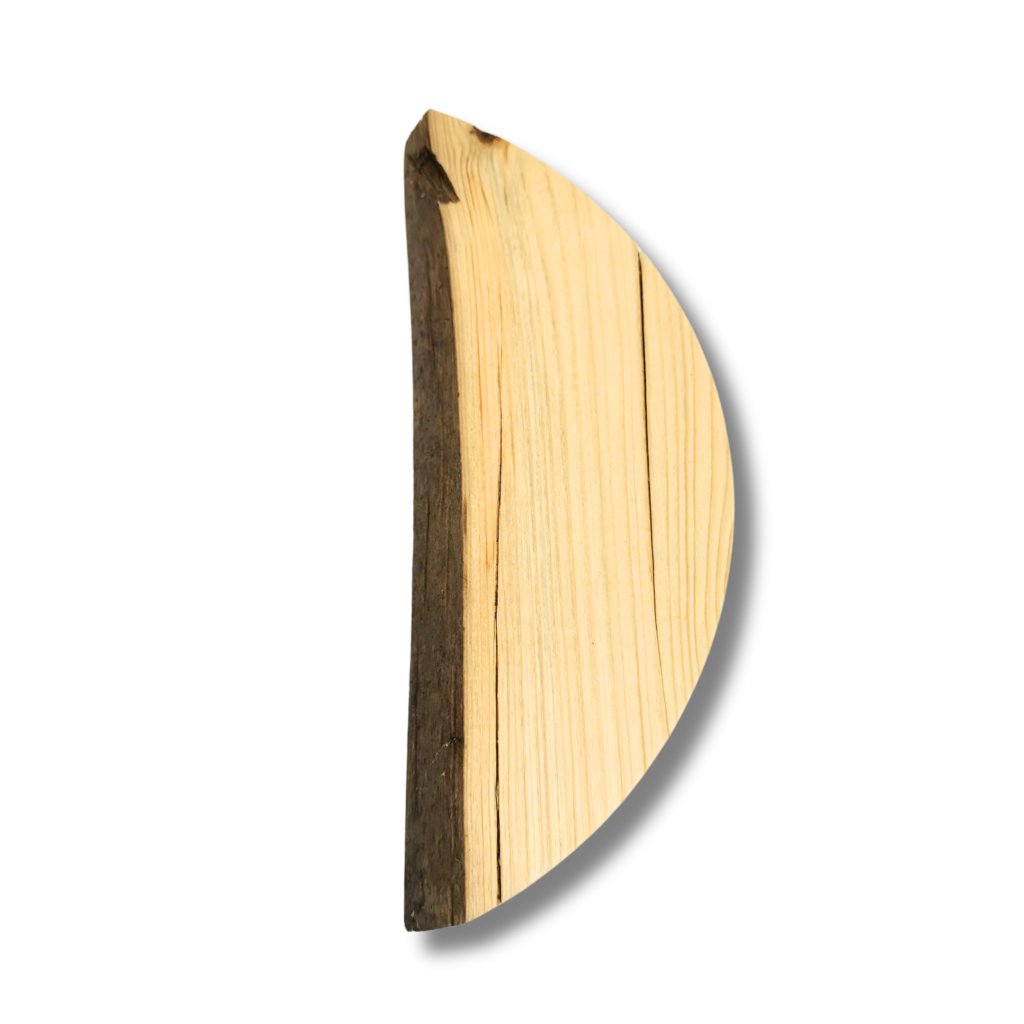 Dieser kreisförmige Randzuschnitt in Halbmondform hat einen Außendurchmesser von ca. 30 cm und ist ideal für kleinere Dekorationen. Jedes Stück ist ein Unikat – es kann einen geraderen oder natürlicheren Rand haben, manchmal sogar mit Rindenresten. Dadurch wirkt er sehr authentisch und eignet sich hervorragend für die Kombination mit Moos, Harz oder anderen Naturmaterialien.