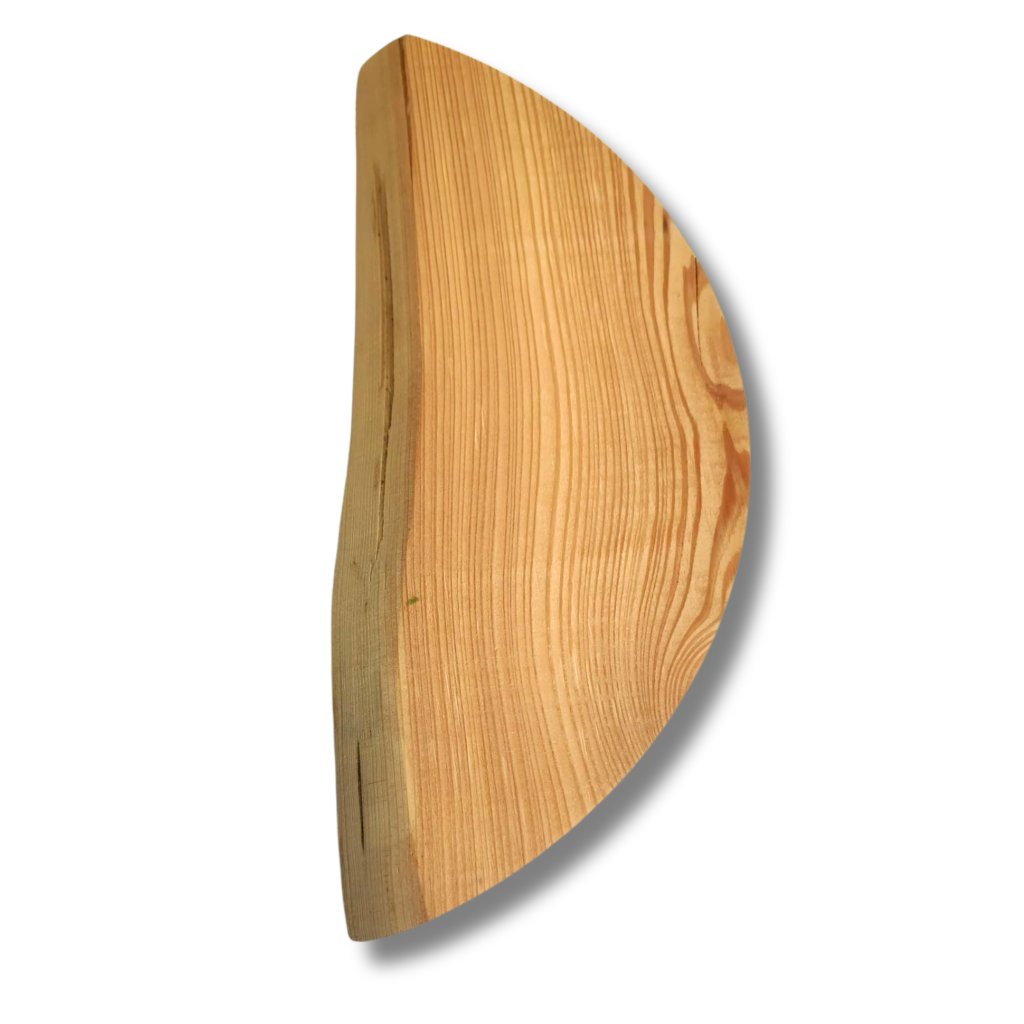 Ein Stück kann als dekorativer Rand von einer Seite verwendet werden, oder Sie können zwei Halbmonde gegenüber kombinieren, um einen ausgeprägten Rahmen für Moos, ein Bild oder eine Epoxidharz-Dekoration in der Mitte zu schaffen. Jedes Stück ist ein Unikat – die Holzstruktur und der Rand können variieren, manchmal ist auch ein Teil der Rinde erhalten.