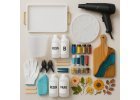 Die Auswahl variiert je nach Art des Sets, enthält aber typischerweise: Messbecher, Rührstäbe, Pipetten, Spatel, Silikonunterlagen, Schutzausrüstung und andere praktische Kleinigkeiten für sauberes Arbeiten.