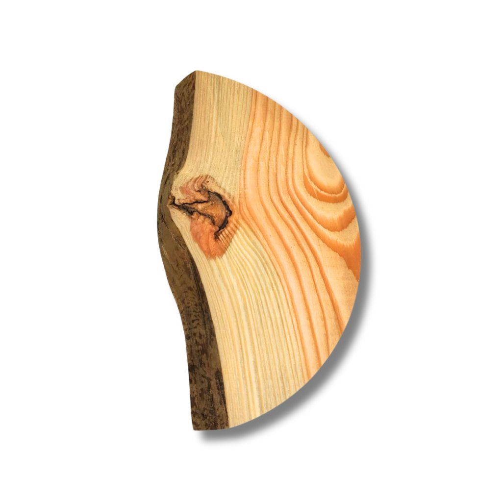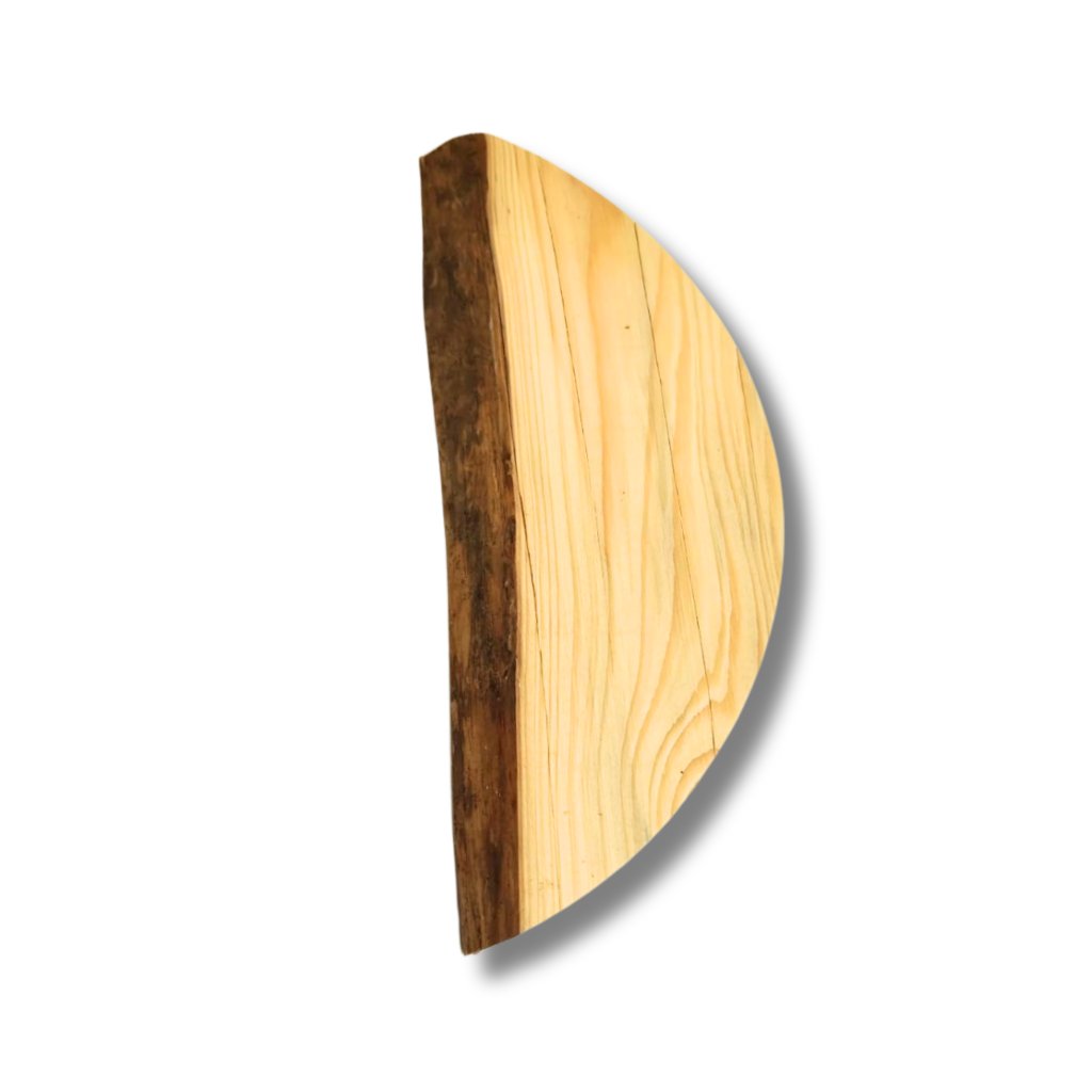 This edge circular cut-out in the shape of a crescent moon has an outer diameter of approx. 30 cm and is ideal for smaller decorations. Each piece is unique – it can have a straighter or more natural edge, sometimes with bark remnants. This makes it look very authentic and it is perfect for combining with moss, resin, or other natural materials.