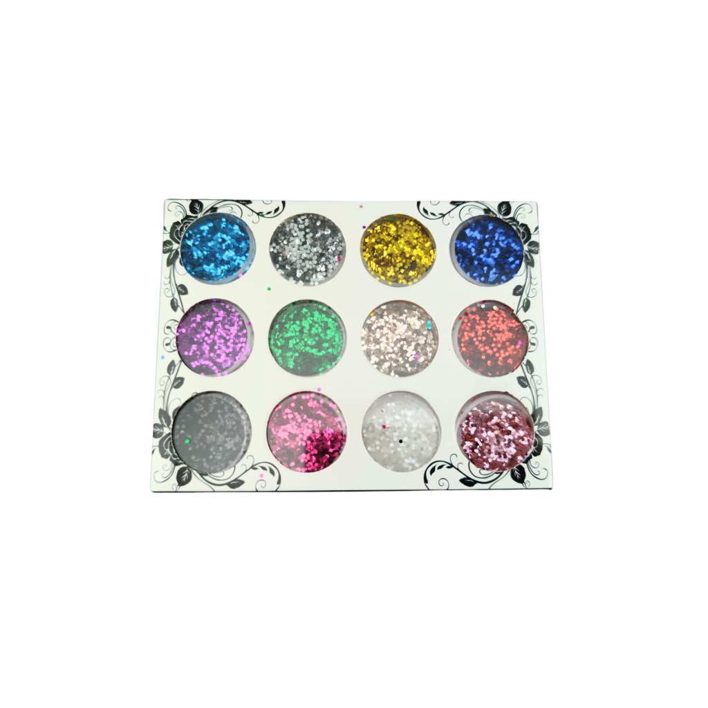Sada 12 ks glitrů mini-hexagon - krabička 12 x3g