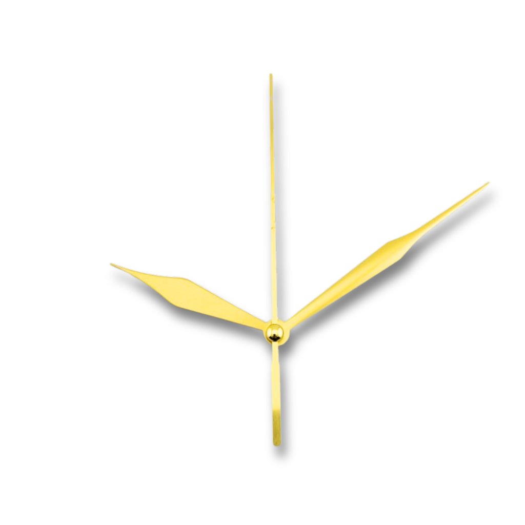 Hodinové ručičky kopinaté 1 s vteřinovkou – 94/63 – zlaté tvoří elegantní sadu pro originální nástěnné hodiny. Štíhlý kopinatý tvar působí moderně, ale stále jemně, takže se hodí jak k minimalistickým ciferníkům, tak k bohatě strukturovaným povrchům z pryskyřice a dřeva.