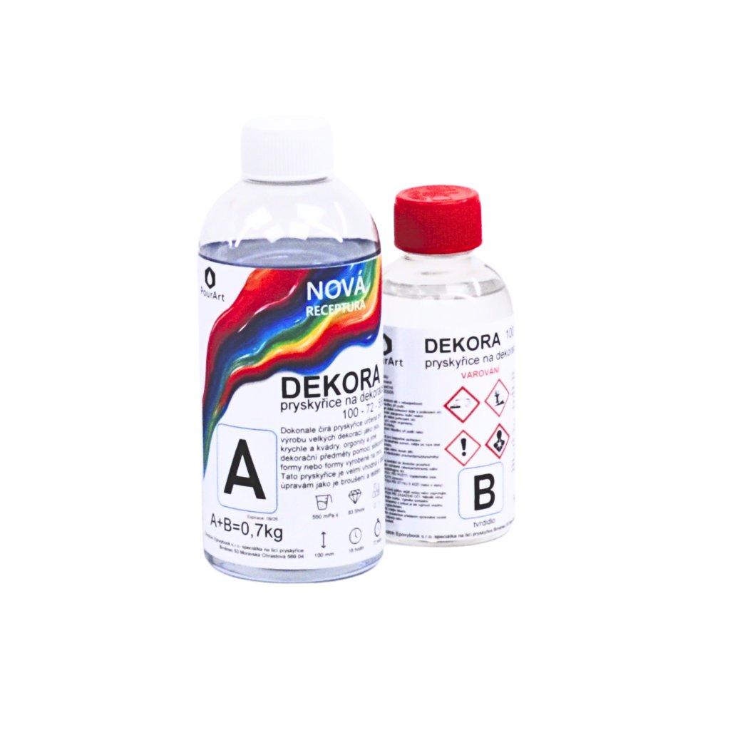 DEKORA 100-72-550 UV++ je řídká křišťálově čirá epoxidová pryskyřice navržená pro výrobu středních a velkých dekorací. Nízká viskozita zajišťuje výborné zalití detailů, samovolné odvzdušnění a po vytvrzení dokonale lesklý povrch. Dlouhá doba zpracování dává prostor pro klidnou práci i u objemných odlitků.