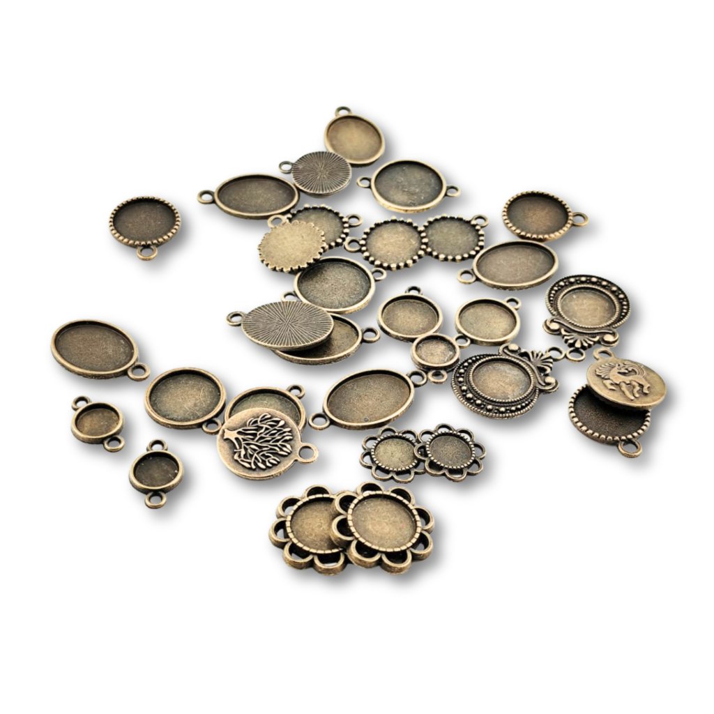 Tento mix lůžek se hodí jak pro ty, kteří s pryskyřicí teprve začínají, tak pro pokročilejší šperkaře. Spárovaná lůžka šetří čas – nemusíte složitě hledat k sobě ladící tvary, jen vyberete kombinaci, kterou chcete použít, a můžete se věnovat samotnému tvoření.