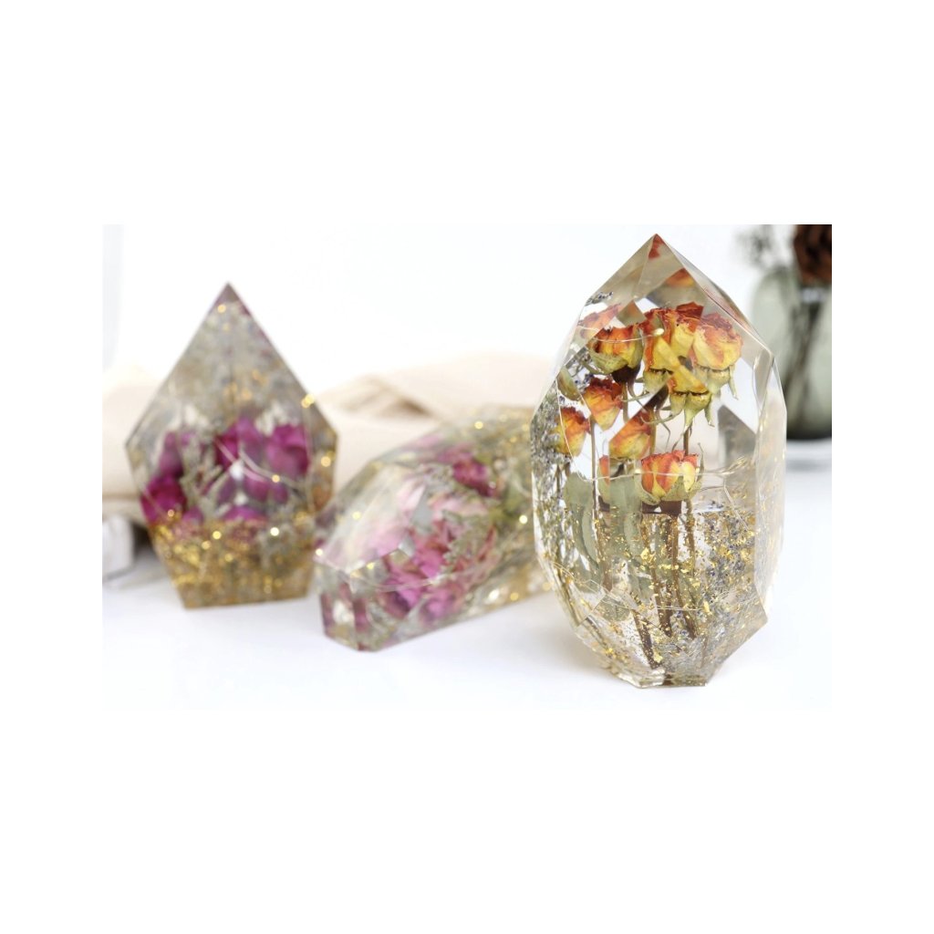 - Silikonové formy – malé dekorace: koule, krychle, menší 3D tvary, pyramidky, krystaly, těžítka