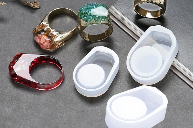Práce s pryskyřicí často zahrnuje výrobu šperků z pryskyřice, mezi které patří i prsteny z pryskyřice. Pro dokonalý tvar se vyplatí používat formy na šperky z pryskyřice. Formy na pryskyřici zajistí ten nejlepší výsledek. Formy na křišťálovou pryskyřici prsteny z pryskyřice můžeme doplňovat celou řadou dekoračního materiálu a šperkařská pryskyřice může být barvena do průhledna a nebo lze použít pigmenty pro neprůhledné prsteny z pryskyřice. Zajímavým efektem v prstenech je použití prášku Jadeit, kterým napodobujeme přírodní minerály. Jadeit dodává licí pryskyřici specifický zákal, kterým jsou charakteristické právě přírodní minerály. Formičky na pryskyřici prsteny jsou elastické a lze je použít opakovaně -silikonové formy na pryskyřici.