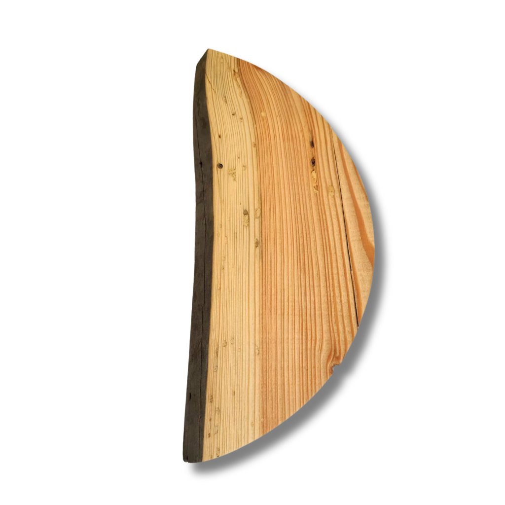 Tento okrajový kruhový výsek v tvare polmesiaca má vonkajší priemer cca 40 cm a je ideálnym doplnkom na tvorbu originálnych dekorácií. Každý kus je jedinečný – môže mať rovnejší alebo viac prírodný okraj, niekedy aj so zvyškami kôry. Vďaka tomu pôsobí veľmi autenticky a krásne vynikne v kombinácii s machom alebo epoxidovou živicou.