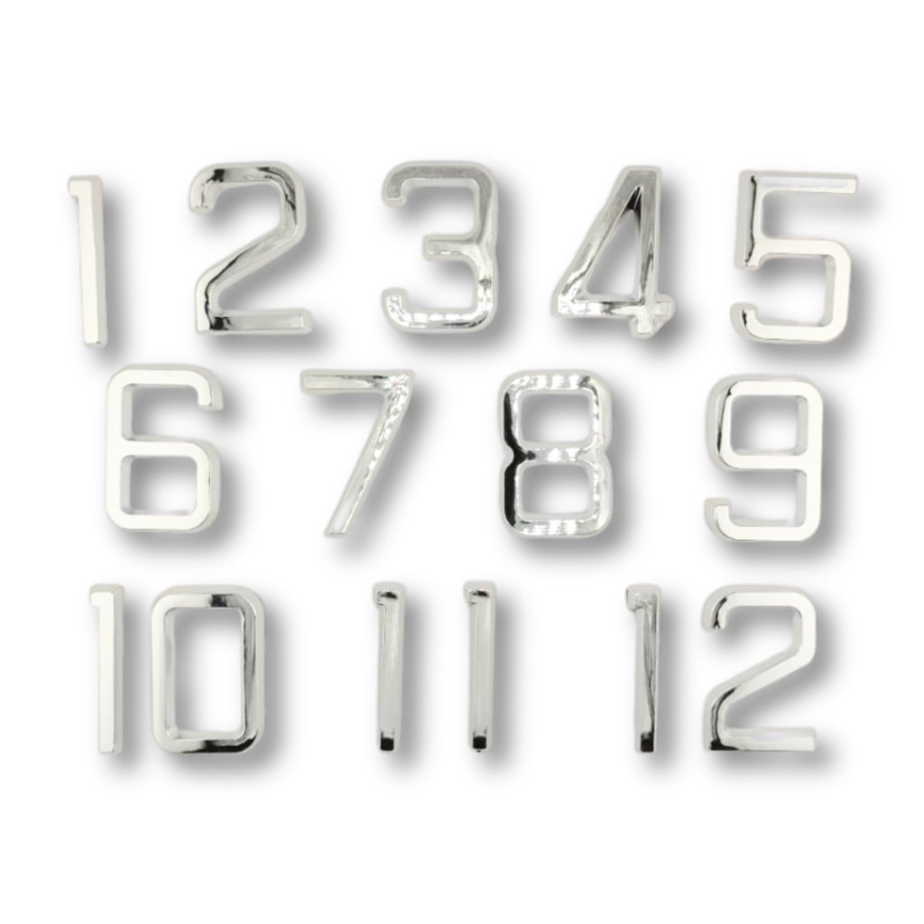 Táto položka predstavuje jednotlivú striebornú hranatú číslicu 65 mm. Je ideálna, ak potrebujete doplniť alebo vymeniť konkrétne číslo, prípadne chcete použiť na ciferníku len vybrané čísla (napríklad 3, 6, 9 a 12).