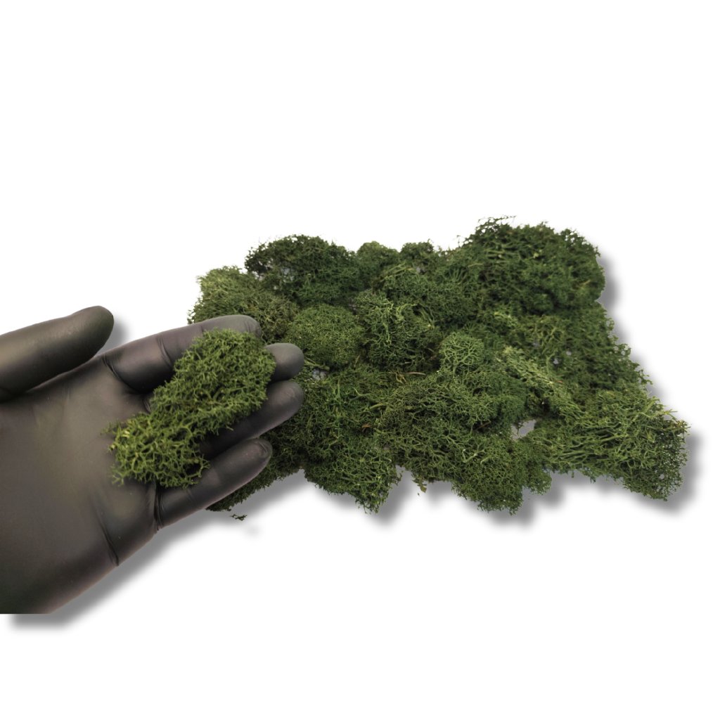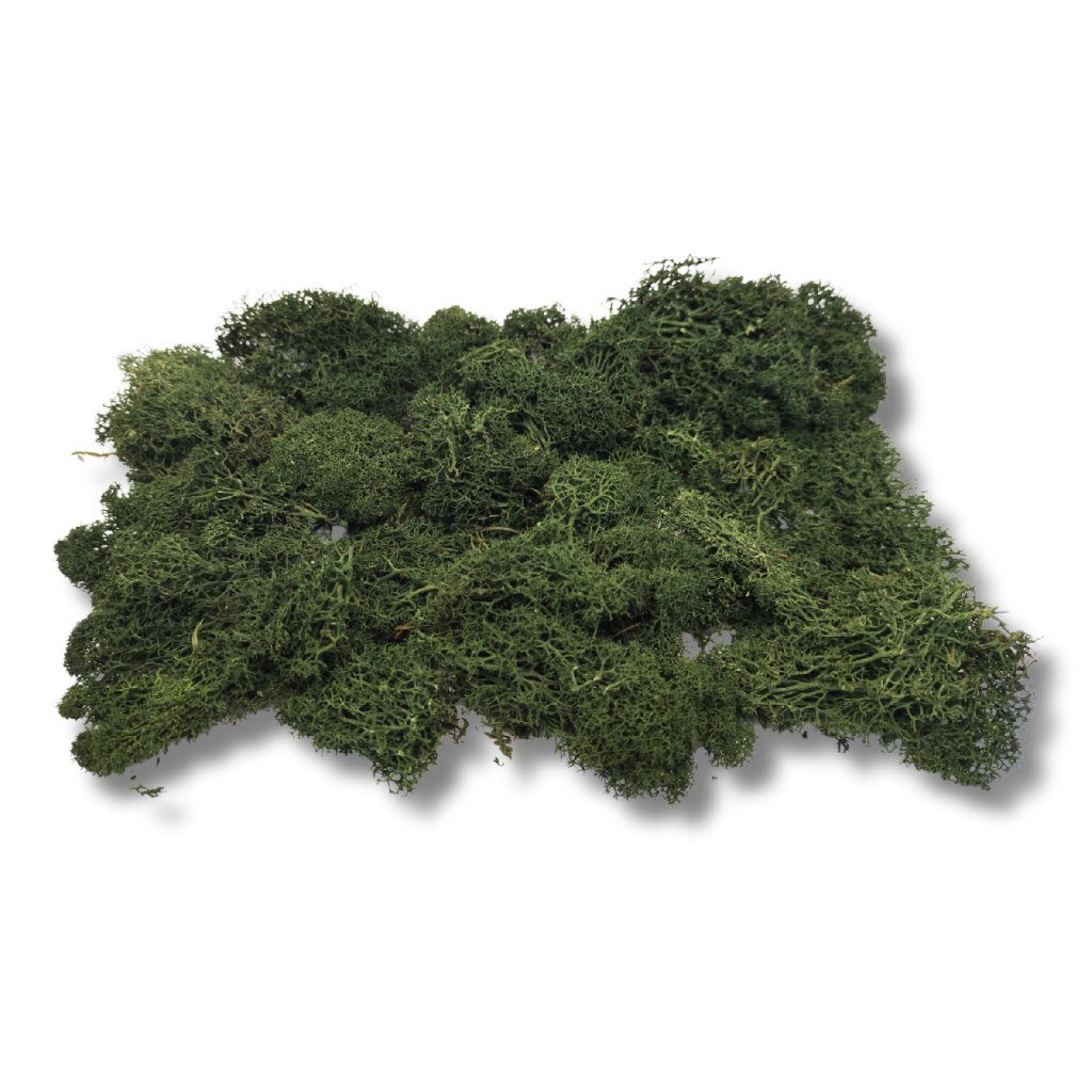 Stabilizovaný mech je 100% přírodní materiál, jehož přirozená vlhkost byla šetrně nahrazena stabilizační složkou. Díky tomu zůstává měkký, pružný a barevně stálý po velmi dlouhou dobu – bez zalévání a bez přímého světla. Tmavě zelený odstín dodá projektům hloubku a elegantní, „lesní“ charakter.