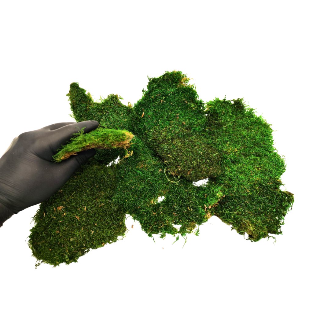 Plochý mech je stabilizovaný přírodní materiál s nízkým profilem a zeleným odstínem. Stabilizace šetrně nahrazuje přirozenou vlhkost, díky čemuž si mech udržuje měkkost, pružnost a barvu po velmi dlouhou dobu – bez zalévání a bez přímého světla.