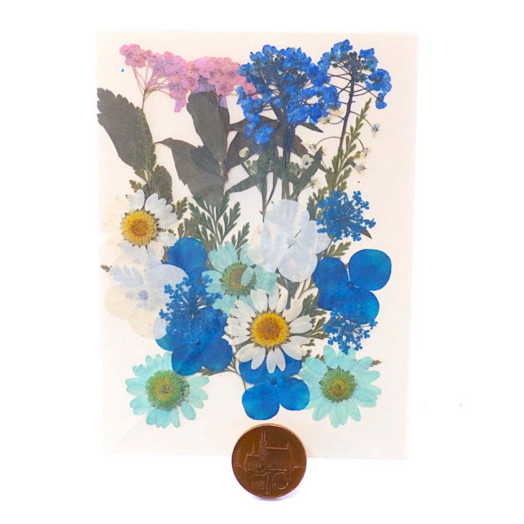 Profesionálně sušené květiny na papírovém archu jsou uzavřené v neprodyšné fólii pro zachování barvy a kvality rostlin. Sušené květiny využíváme při výrobě šperků a různých dekorací z pryskyřice.