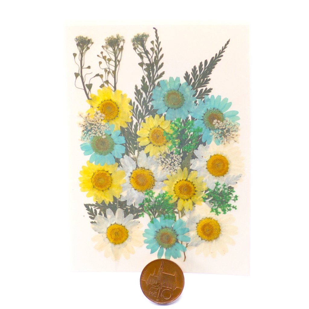 Profesionálně sušené květiny na papírovém archu jsou uzavřené v neprodyšné fólii pro zachování barvy a kvality rostlin. Sušené květiny využíváme při výrobě šperků a různých dekorací z pryskyřice.
