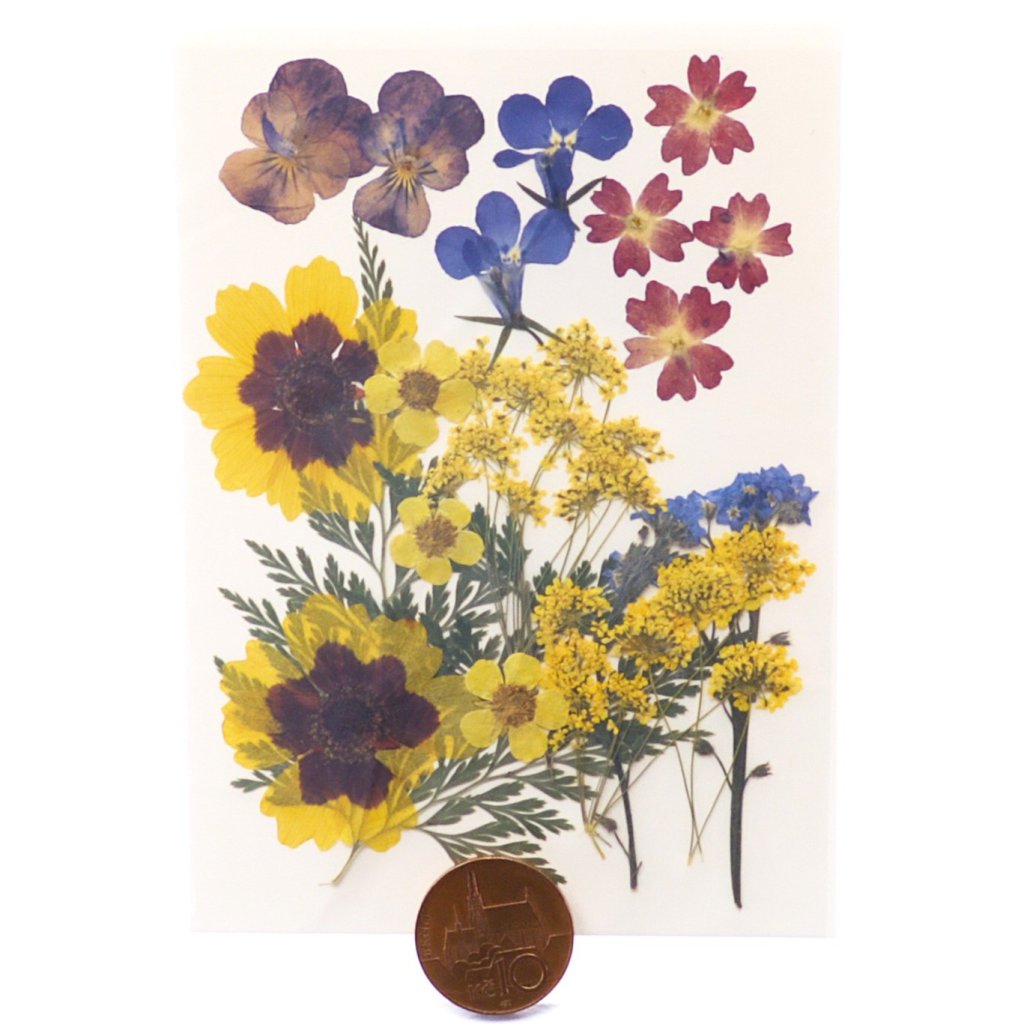 Profesionálně sušené květiny na papírovém archu jsou uzavřené v neprodyšné fólii pro zachování barvy a kvality rostlin. Sušené květiny využíváme při výrobě šperků a různých dekorací z pryskyřice.